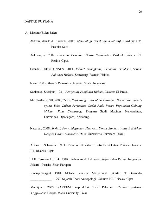 84 DAFTAR PUSTAKA Buku: Arikunto, Suharsimi, 2006, Metode Penelitian: Prosedur Penelitian Suatu Pendekatan Praktik, Jakarta: Rineka Cipta. Bahsan, M., 2007, Hukum Jaminan dan Jaminan Kredit Perbankan Indonesiat, Rajawali Pers, Jakarta. Burhan, Bungin, 2001, Metodologi Penelitian Kualitatif, PT Raja Grafindo Persada, Jakarta. Fuady, Munir, 2000, Jaminan Fidusia, PT.